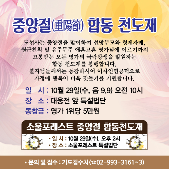 대한불교조계종 도선사대표. 도심주소. 서울시 강북구 도선사길278 (우 01002)