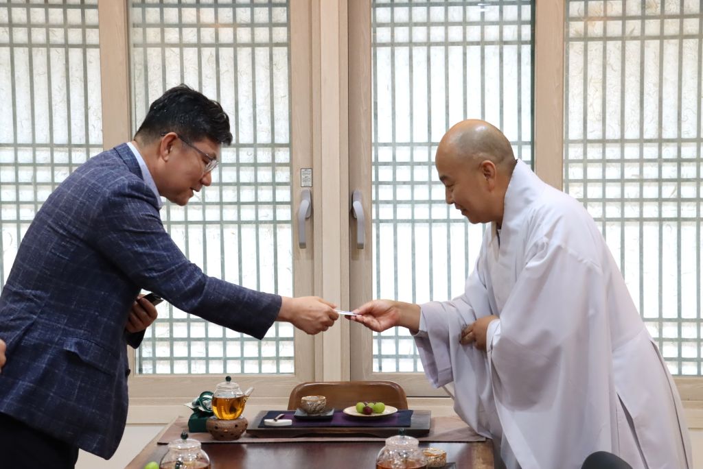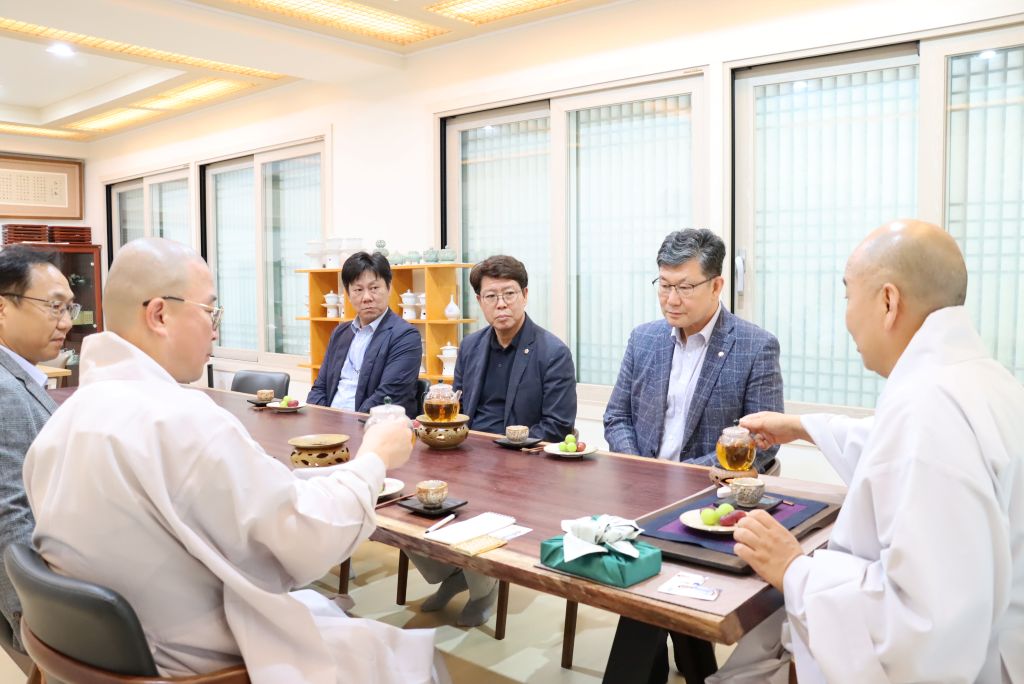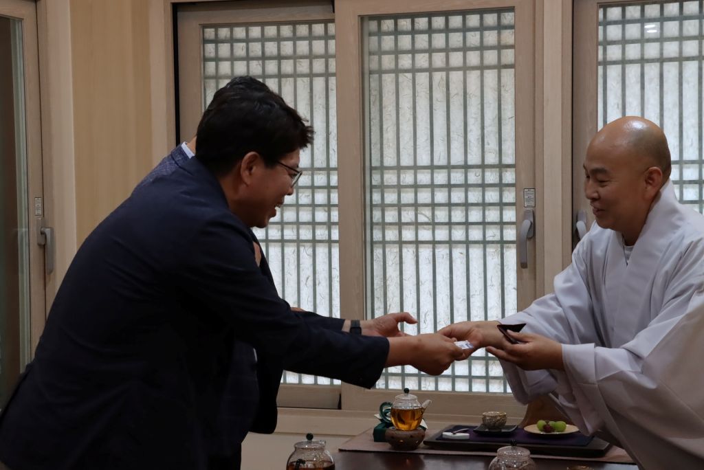 국회의원(성북구 을) 김남근님과 시의원 강동길님은 10월 3일 도선사를 방문해, 주지 도심 스님과 추석 명절 인사 및 간담회를 갖고 지역 현안과