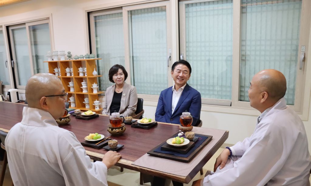 김동근 의정부시장이 도선사 주지 도심스님을 예방해 지역사회와의 소통 및 협력 강화를 위한 시간을 가지셨습니다.