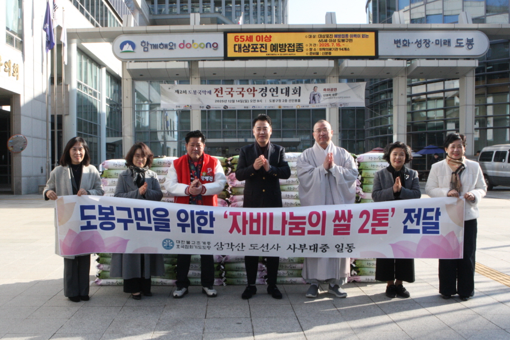 삼각산 도선사는 12월 12일 도봉구청을 방문하여 자비의 쌀 전달식을 가졌다.