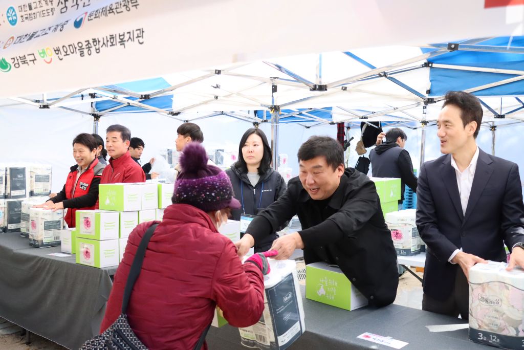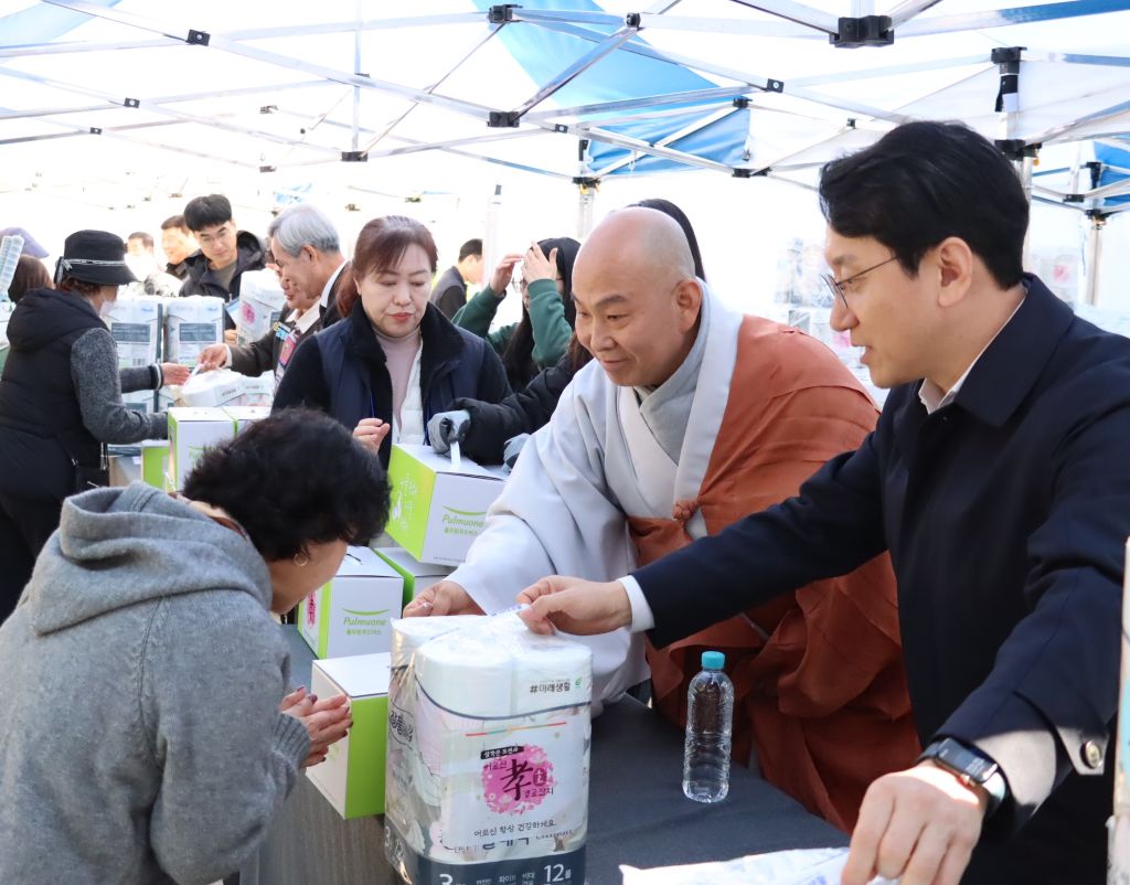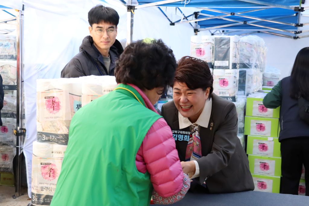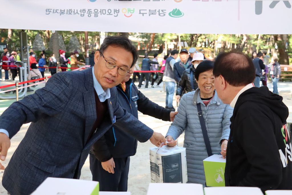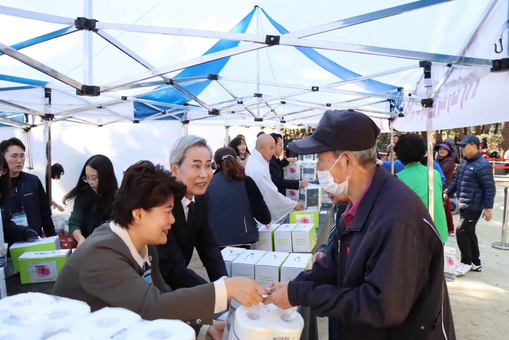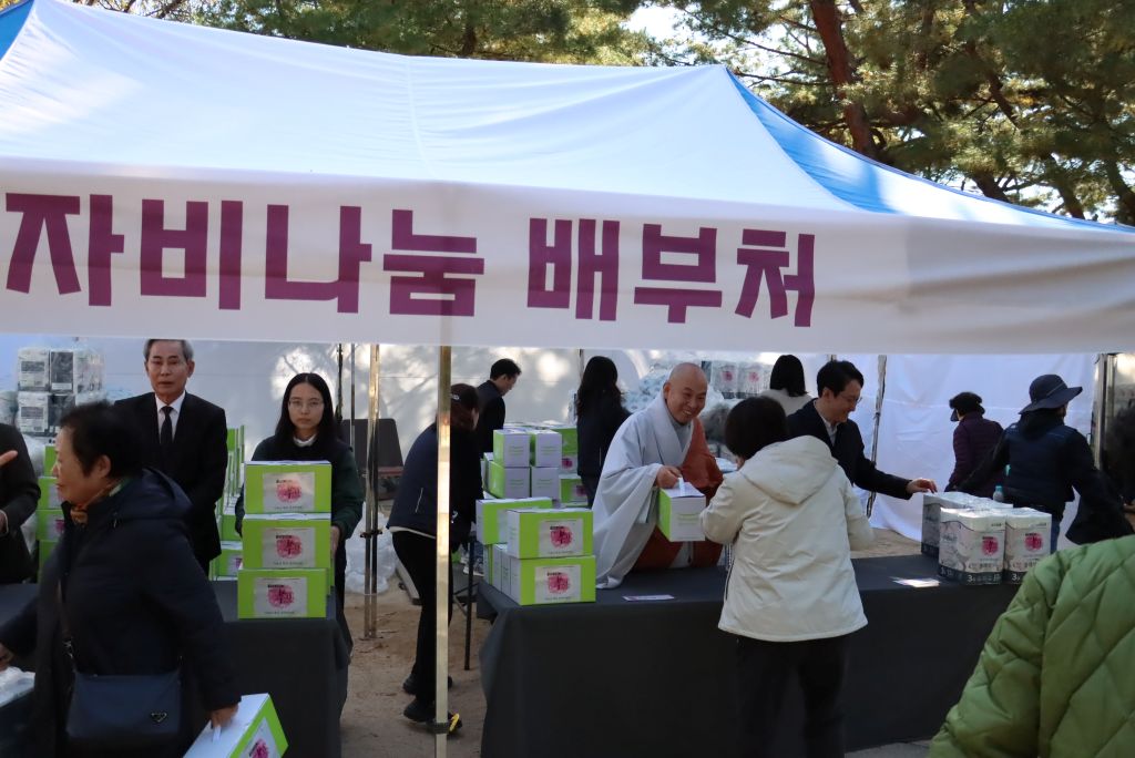 2025년 11월 01일 강북구 솔밭근린공원에서 삼각산 도선사 어르신 효 경로잔치 행사에서 강북구 어르신들에게 도선사 주지 도심스님과 지역구 의원 및 국회의원이 자비나눔 행사를 진행하셨습니다.